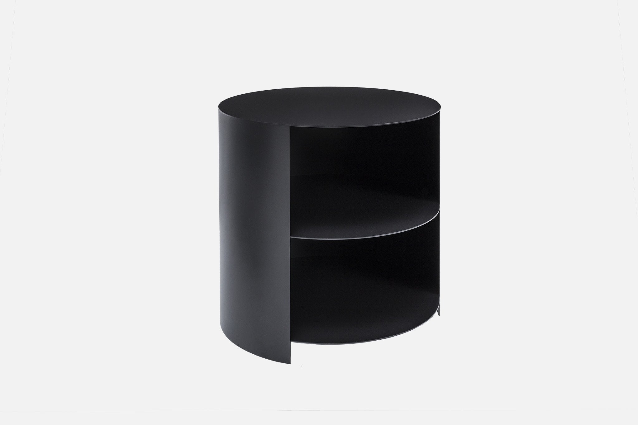 With its sleek and minimal cylindrical design, the Hide Side Table is the epitome of Fesser’s signature form meets multipurpose function design. Made from powder-coated steel, the Hide Side Table’s formal geometric body conceals useful storage compartments—simply rotate it to display or hide your favorite items. With its bold monolithic look, and hidden wheels for easy maneuverability, it’s a minimal piece with practicality.